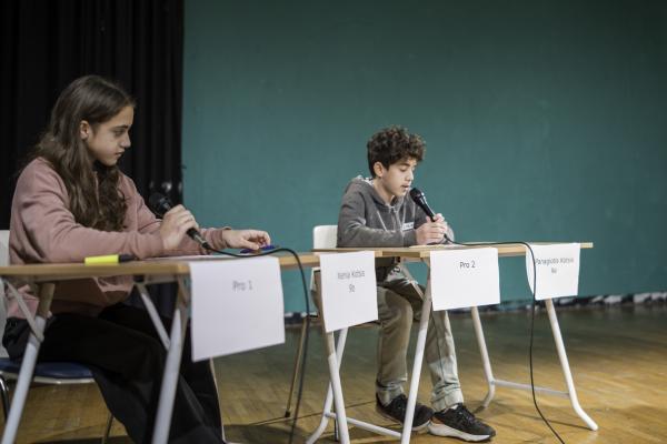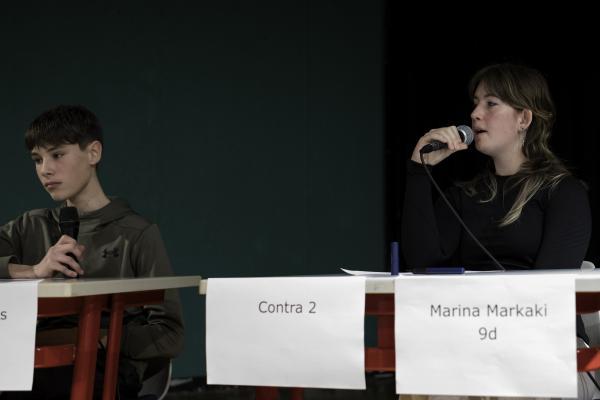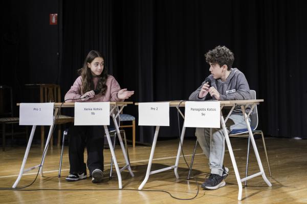 Den Debattierwettbewerb „Jugend debattiert“ gibt es in Deutschland schon lange und auch bei uns in Griechenland ist er jetzt seit 2025 etabliert. Bei dem Wettbewerb geht es weniger darum, einen Streit zu führen, sondern das Ziel ist es, öffentlich so miteinander zu diskutieren, dass das Publikum möglichst viele interessante Informationen, Ansichten und Idee zum Streitpunkt bekommt. Dieses Format ist sehr kooperativ und erfordert sowohl Sachkenntnis als auch die Fähigkeit, zuzuhören und sich produktiv auszutauschen.