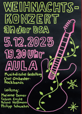 Την Παρασκευή 5.12.2025, στις 19.30, μπορείτε να απολαύσετε όχι μια, αλλά περισσότερες εμφανίσεις των μουσικών μας Ομίλων (Μουσικά σύνολα-Instrumentalensemble, ροκ μπάντες, χορωδία) στη Χριστουγεννιάτικη συναυλία της DSA!