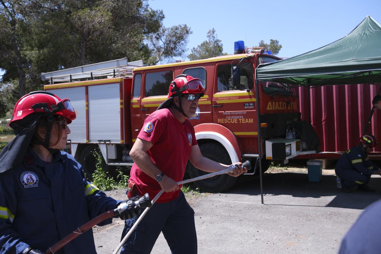 Την Κυριακή 26.04.2026, ο Ελληνογερμανικός Σύλλογος «Φιλαδέλφεια», σε συνεργασία με το Πυροσβεστικό Σώμα Εθελοντών Προβάλινθου (ΠΥ.Σ.ΕΘ.) Νέου Βουτζά, τη Διεύθυνση Πολιτικής Προστασίας της Περιφέρειας Αττικής και με την υποστήριξη της Γερμανικής Πρεσβείας στην Αθήνα, διοργάνωσε μια βιωματική δράση με ιδιαίτερο ενδιαφέρον. Το πρόγραμμα περιλάμβανε παρουσιάσεις γύρω από την πυροπροστασία, καθώς και εκτενή πρακτική εξάσκηση!